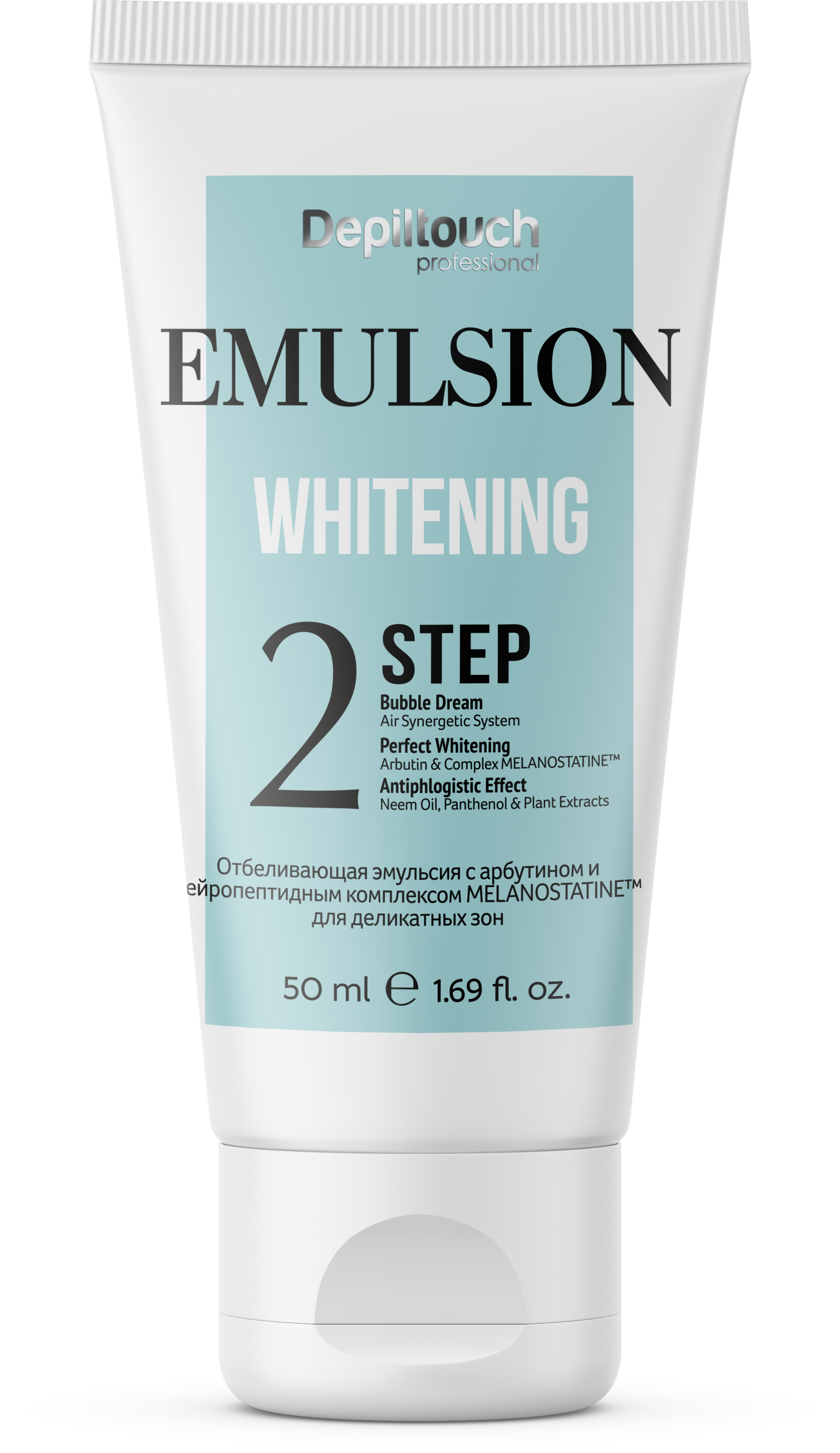 Depiltouch Отбеливающая система: шаг 2. Эмульсия отбеливающая с арбутином, койевой кислотой и нейропептидом MELANOSTATINE для деликатных зон 50 мл