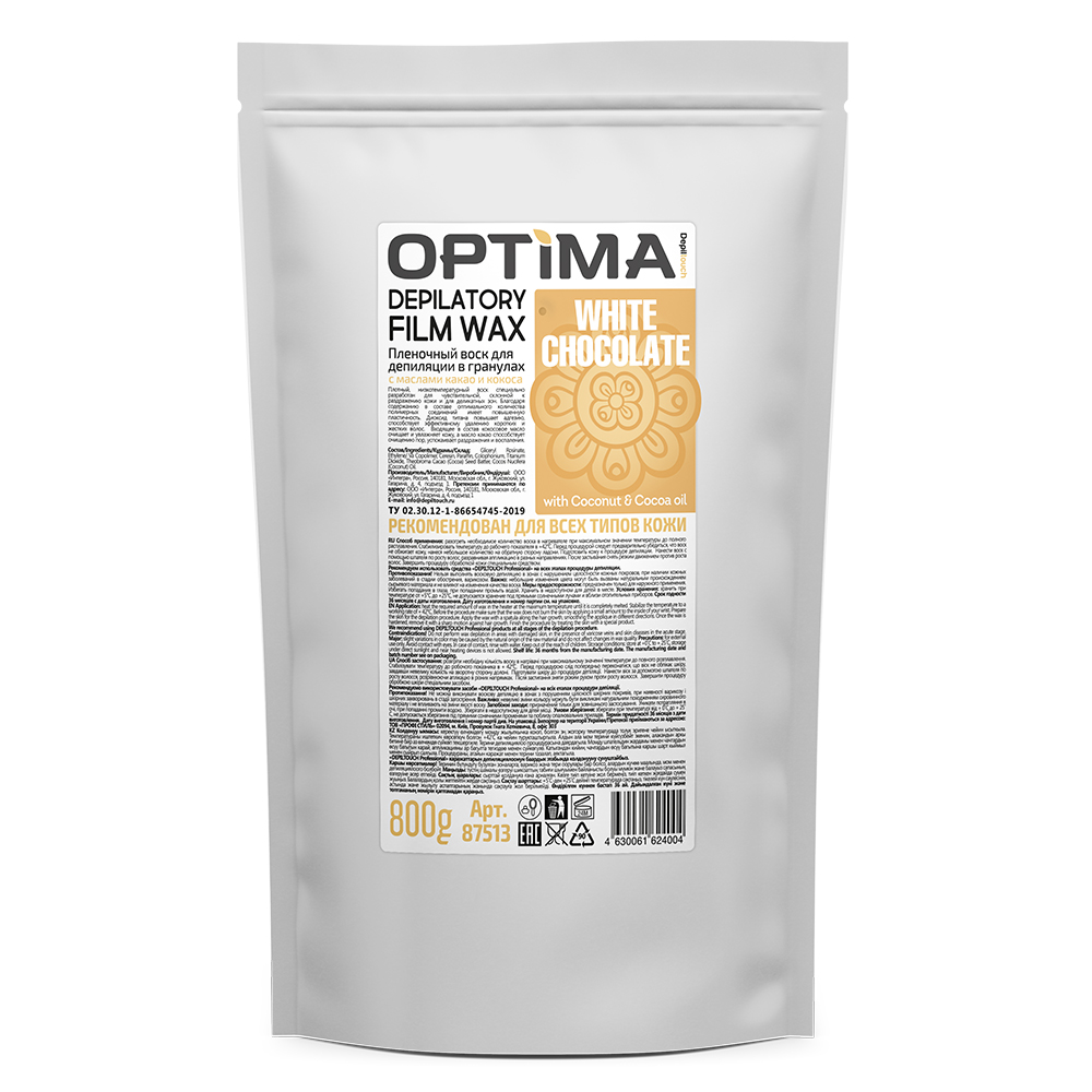 Пленочные воски в гранулах серии OPTIMA - это российские воски нового поколения для депиляции в различных техниках. Пленочные воски наносятся тонким слоем, четко повторяют контуры тела и удаляются руками без использования дополнительных материалов. Обладают повышенной пластичностью и обеспечивают отличный результат. Невысокая температура плавления гранулированных восков 40 - 45С уменьшает вероятность ожогов, при нанесении производит эффект распаривания, облегчая выход волоса. Диоксид титана в составе воска дарит ему дополнительную пластичность, снижает температуру плавления, повышает адгезию, способствует эффективному удалению коротких и жестких волос.