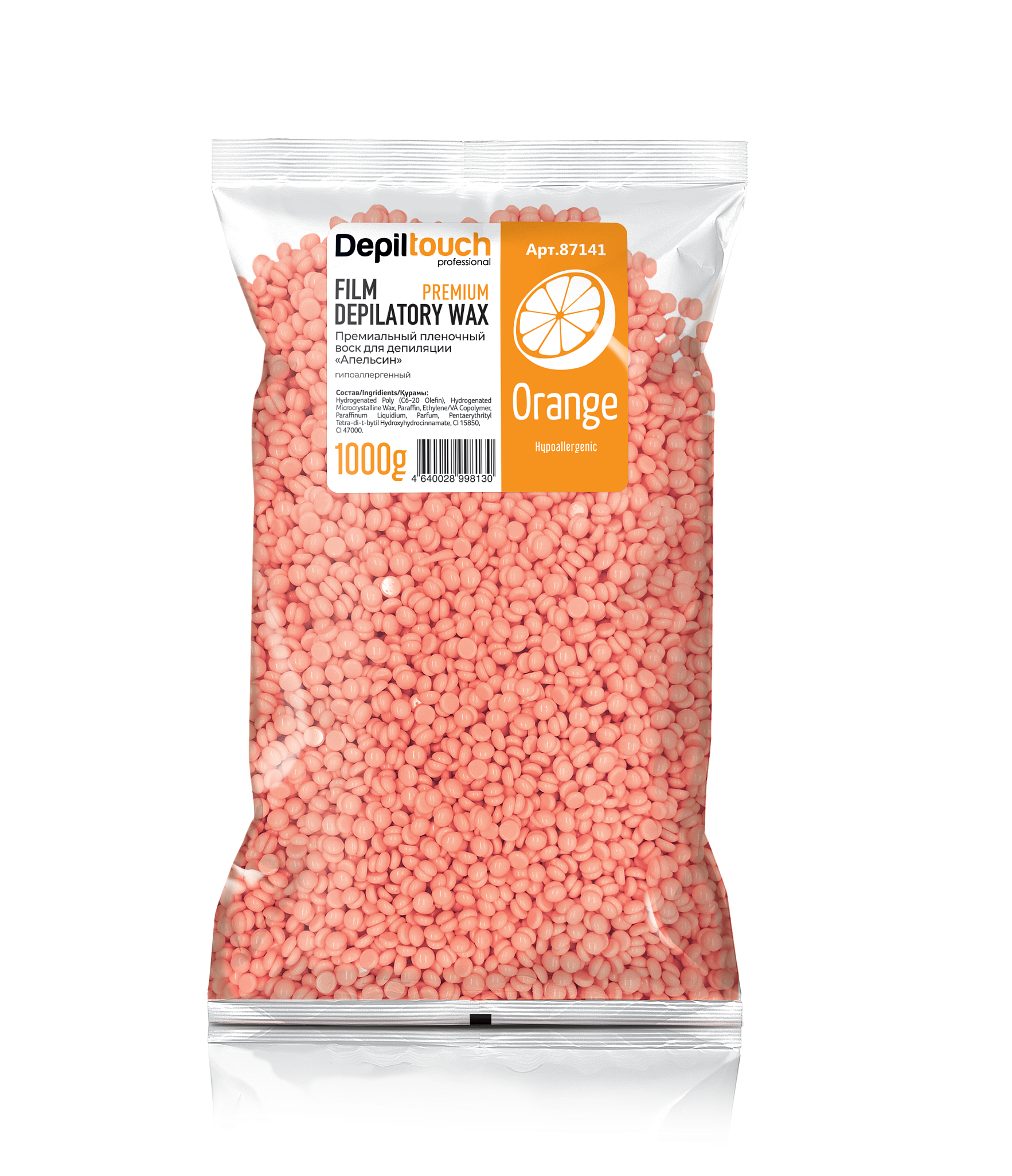 Полимерный премиальный пленочный воск Orange 1000 г,для пушковых и мягких волос