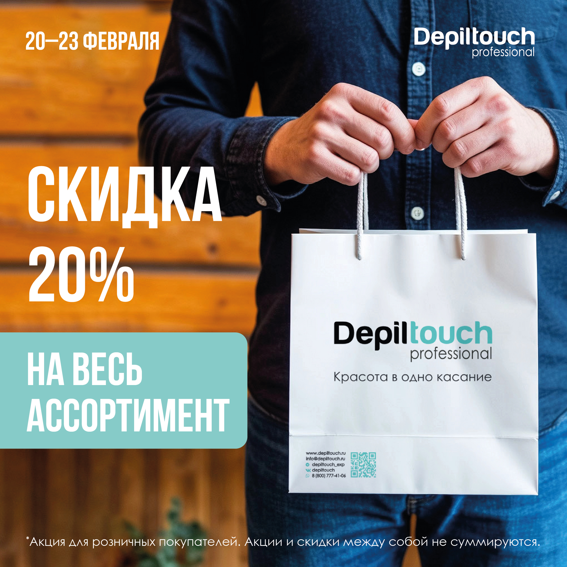 С 20 по 23 февраля скидка 20% на всю продукцию бренда Depiltouch Professional!